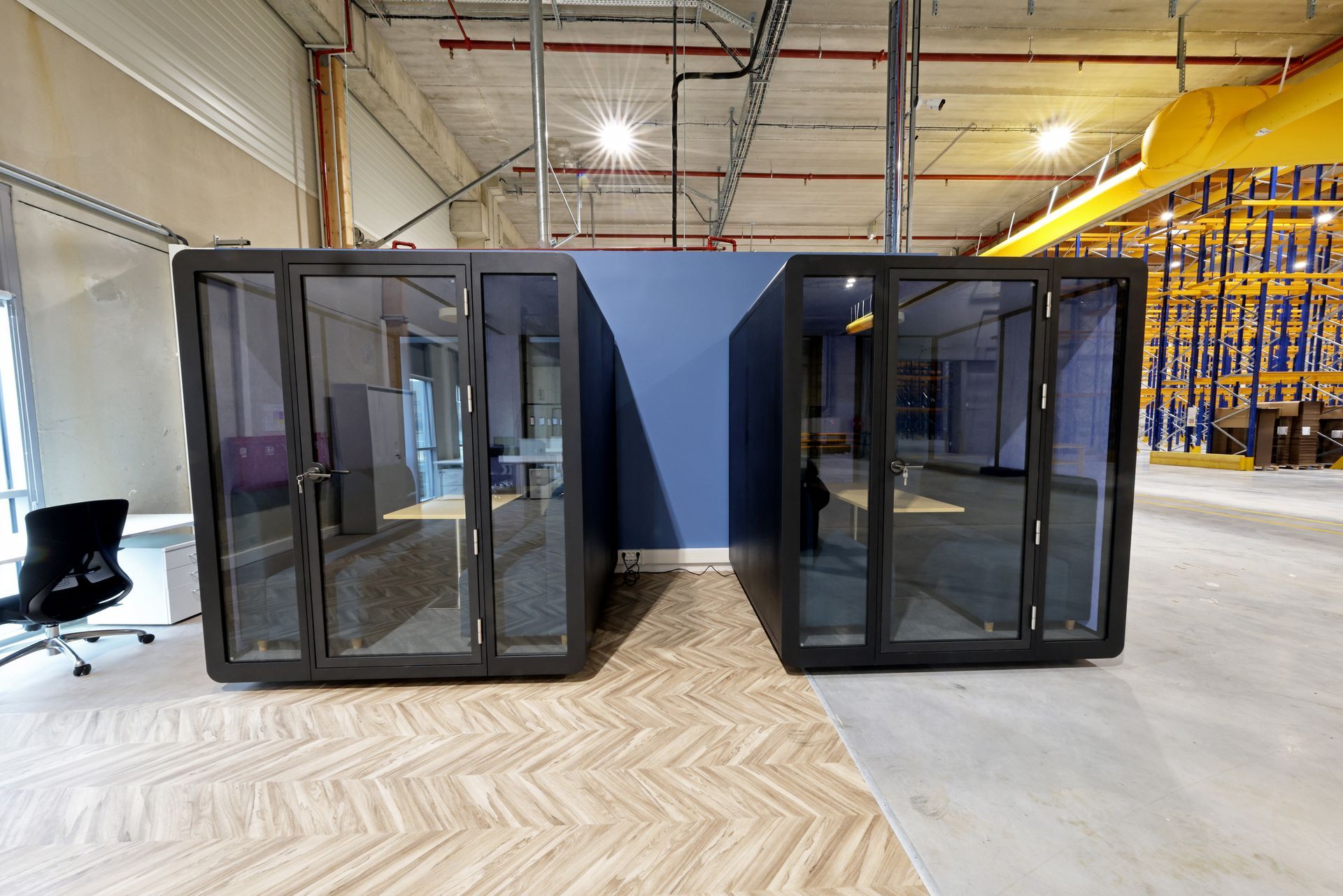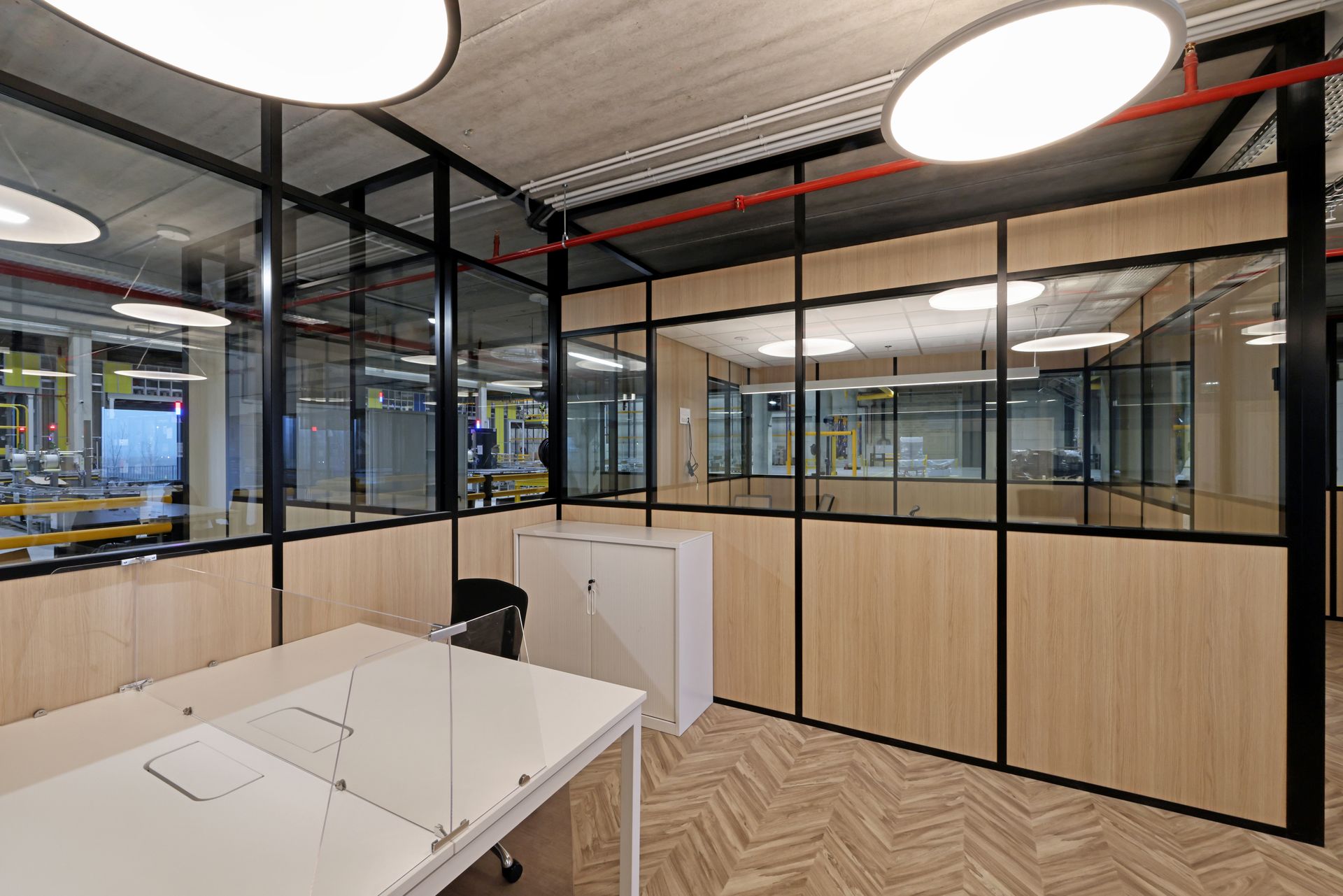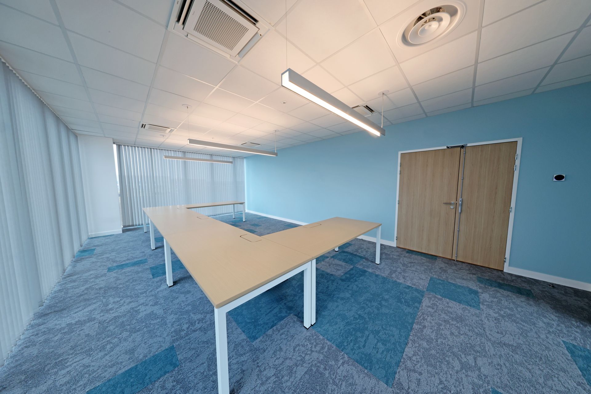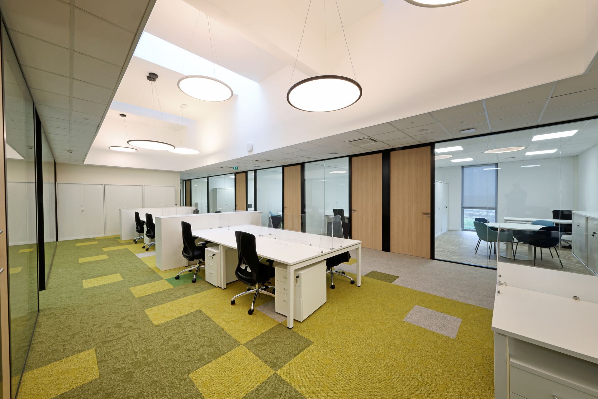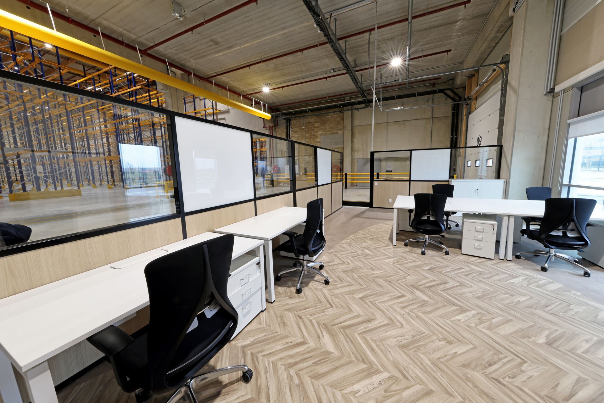Intervention de Sofrapev pour la rénovation complète d’un espace tertiaire : pose de revêtements de sol, installation de cloisons et travaux de peinture.